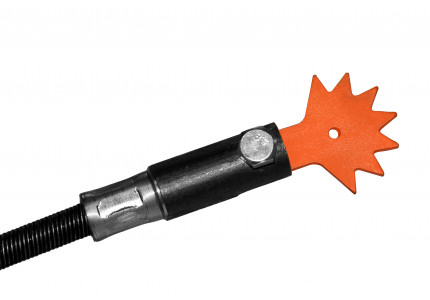 Разрушить или пробить практически любое твердое засорение в канализационной трубе помогает насадка «Фреза». Она крепко фиксируется на рабочем конце троса, имеющего диаметр 12, 14, 16, 18 а также 20 мм.